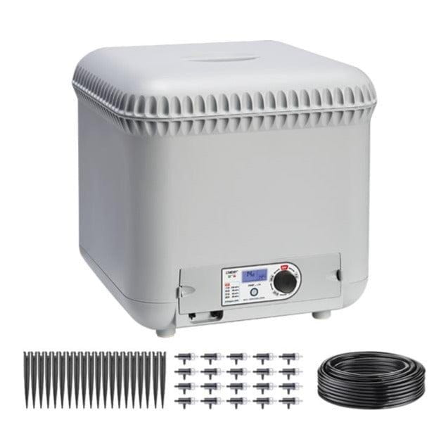 The Claber Oasis Evolution is designed for watering indoor plants for a period of 7 - 28 days. This is an all in one unit, with a 25-litre water tank, 20 drip emitters (for 20 plant pots), and 10 metres supply tube. This is ready to use within minutes, is extremely compact and requires no electrical connection as it runs off of 2x AA batteries. Choose from one of four programs depending on the length of time you want to have automatic watering for - either 7, 14, 21 or 28 days of autonomy.